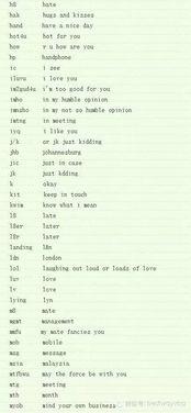 当然,这些缩写并不是官方的,而是网友们根据实际情况创造的。在实际应用中,你可以根据自己的喜好和语境选择合适的缩写。比如,在社交媒体上,你可以这样写: